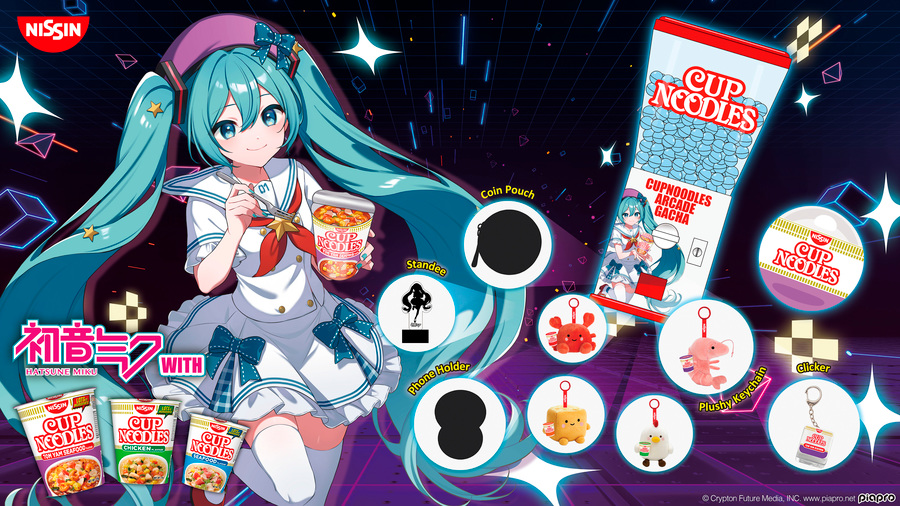 - Prizes include limited-edition Cup Noodles x Hatsune Miku merchandise across five (5) tiers, including LED Acrylic Standees, Coin Pouches, Phone Holders, Condiment, Plushies, and LED Clicker Keychains.